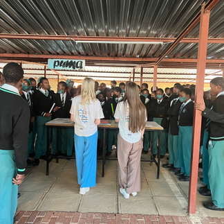 This was our first-day delivering workshops. We were all very excited to return to Masunga S.S.S. after such a warm welcome the day before and were eager to get started with all the workshops we had prepared. Although we had rehearsed what we would all say to introduce ourselves, everyone was still slightly nervous. It was a much larger group of young people than any of us had worked with before, and it was the first time we would explain the engineering concepts associated with the workshops to an audience. A few members of staff and students helped us to set up the area we would be working in, where we then had a little while to set up with our own supplies before the students joined us after their lunchtime.